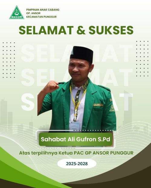 LAMPUNG TENGAH – Pimpinan Anak Cabang GP Ansor Kecamatan Punggur, Kabupaten Lampung Tengah kini telah memiliki nahkoda baru, yakni Ali Ghufron, S.Pd.