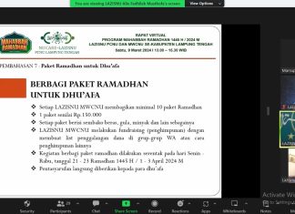 LAMPUNG TENGAH – Jajaran pengurus jamiyyah perkumpulan MWC NU Bandar Mataram dan UPZISNU MWC NU Bandar Mataram mengadakan pelatihan amil zakat infaq dan shadaqah,...