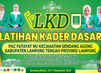 PRINGSEWU – Jajajaran keluarga besar pengurus Pimpinan Cabang (PC) Fatayat Nahdlatul Ulama Kabupaten Pringsewu, Provinsi Lampung menggelar proses kaderisasi formal, yakni Latihan Kader Dasar...