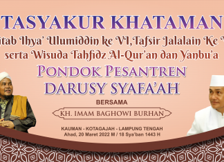 LAMPUNG TENGAH – Memasuki bulan Sya’ban 1443 H yang istimewa ini seluruh unsur keluarga besar Pondok Pesantren Darusy Syafa’ah Kampung Kotagajah, Kecamatan Kotagajah, Kabupaten...