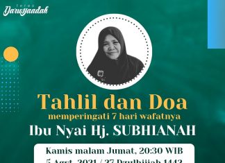 Malam ini, Tahlil dan Doa 7 Hari Nyai Hj. Subhianah, Istri...