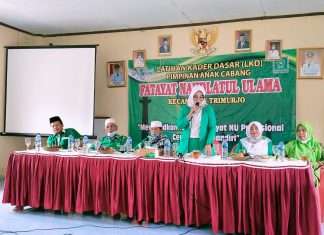 LAMPUNG TENGAH – Jajajaran keluarga besar Pimpinan Cabang (PC) Fatayat Nahdlatul Ulama Kabupaten Lampung Tengah, Propinsi Lampung kembali menggelar Latihan Kader Dasar (LKD).