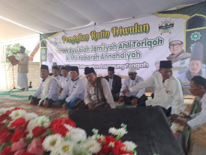 LAMPUNG TENGAH – Bertempat di komplek Gedung Thariqah Qadiriyah wa Naqsabandiyah Dusun III, Kampung Varia Agung, Kecamatan Seputih Mataram, Kabupaten Lampung Tengah, Provinsi Lampung, pengurus Idarah Syu’biyyah Jam’iyyah Ahlit Thariqoh Al Mu’tabarah An Nahdliyyah (Jatman) Kabupaten Lampung Tengah menggelar pengajian rutin Triwulanan pada Rabu (8/4/2026) pagi, bertepatan 19 Syawal 1447 H.