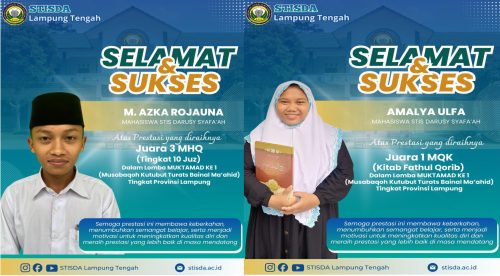 “Dua mahasiswa STISDA Lampung Tengah tersebut mengikuti lomba yang di adakan oleh Rhabitah Ma’ahid Islamiyah (RMI) PWNU Propinsi Lampung dalam bentuk lomba Musabaqah Kutubut Turats Bainal Ma’ahid ke-1, di kompleks Pondok Pesantren Hidayatul Mubtadi’in Kecamatan Jati Agung, Kabupaten Lampung Selatan, Jumat – Sabtu, (23-24/1/2026) lalu,” imbuhnya.