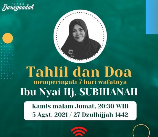 Malam ini, Tahlil dan Doa 7 Hari Nyai Hj. Subhianah, Istri Rais Syuriah PWNU Provinsi Lampung KH. Muhsin Abdillah