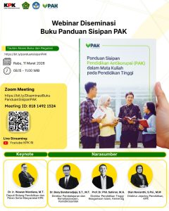 “Dengan agenda ini diseminasi buku: Panduan Sisipan Pendidikan Anti Korupsi Jenjang Pendidikan Tinggi Perguruan tinggi memegang peran kunci dalam membentuk karakter dan integritas generasi masa depan. Membangun generasi berintegritas tidak harus selalu dimulai dari perubahan kurikulum yang besar.,” imbuhnya.